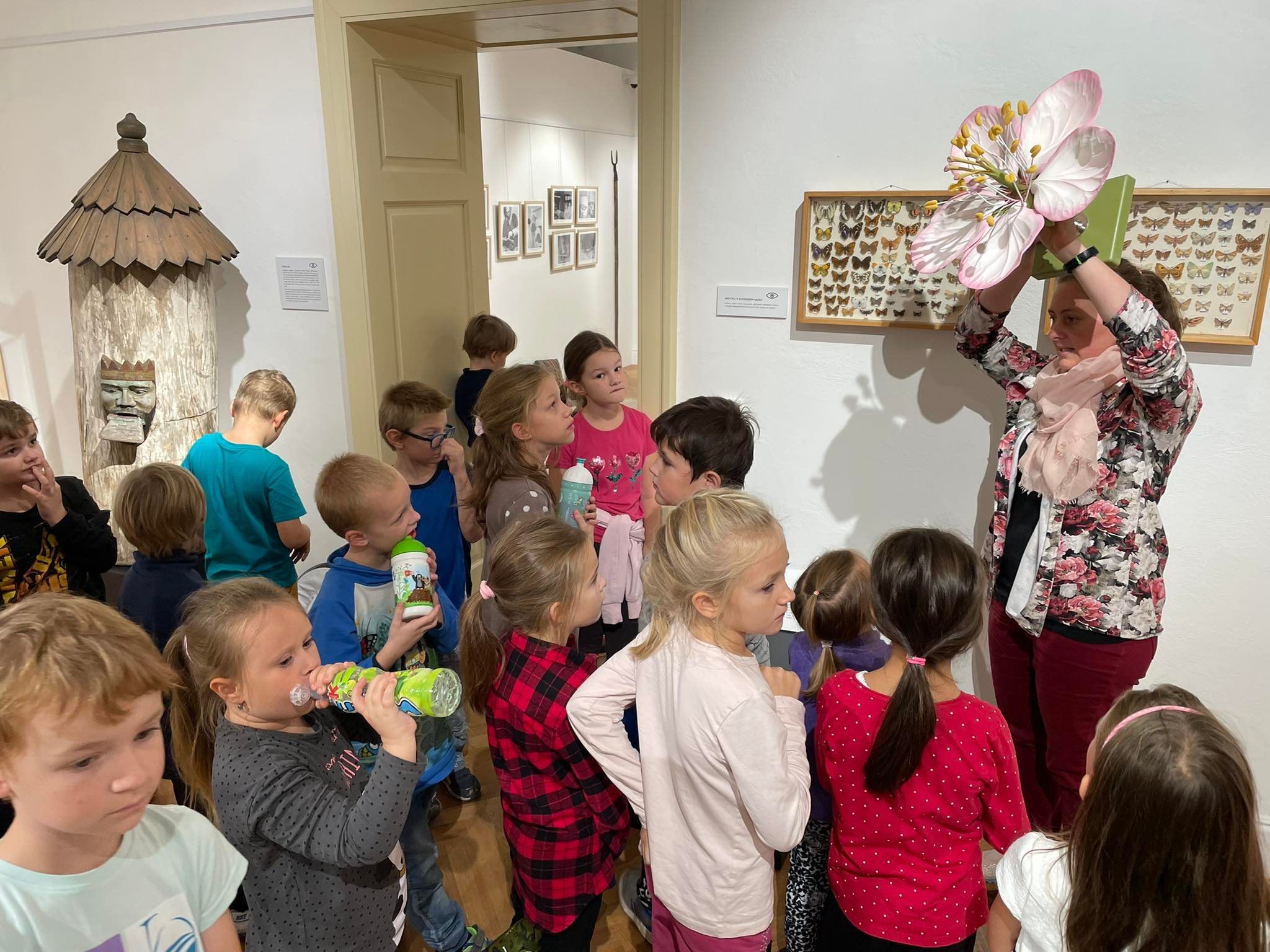 Připomněli jsme si, jak významnou roli mají stromy pro život člověka i živočichů. Pomoci názorných modelů ve zvětšených velikostech, jsme si zblízka mohli prohlédnout například, jak dochází k opylování květů a následného vývoje ovocného plodu. Paní lektorka nám také přiblížila, jak je ovocný sad důležitý pro život některých druhů hub a hmyzu. Dozvěděli jsme se také, že v dutinách stromů hnízdí ptáci či drobní savci, netopýři, ale také plazi, a že nejrozšířenějším obyvatelem sadů je hmyz. Spatřit zde můžeme slunéčko sedmitečné, cvrčka obecného, včelu medonosnou, sršeň obecnou, čmeláky, mravence či různé druhy motýlů.