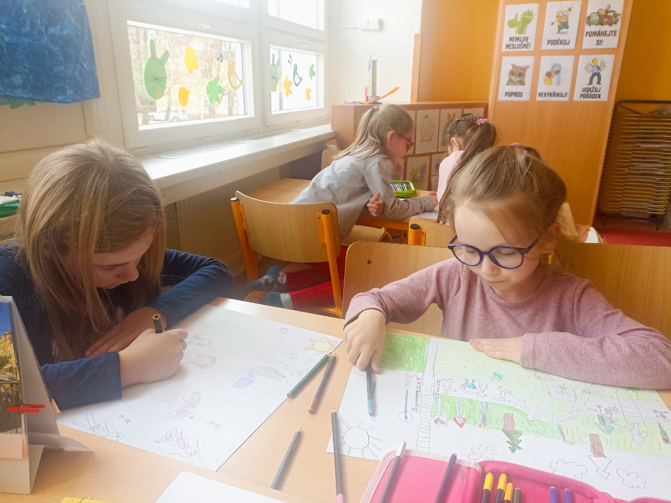Děti z 4. a 3. oddělení ŠD kreslily pro výtvarnou soutěž s dopravní tématikou. Tato navazuje na 10 letou tradici soutěže Nakresli rally, jejíchž všech ročníků se naše ŠD zúčastnila a pokaždé dosáhla na stupně vítězů.