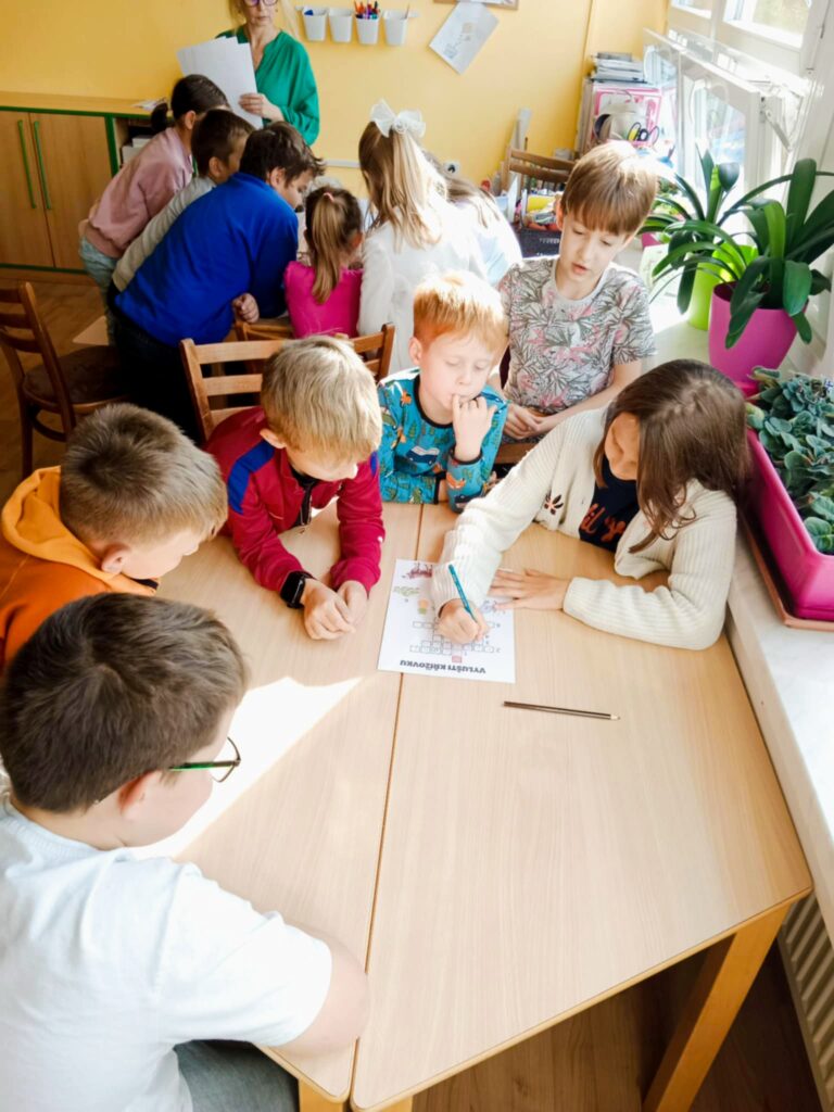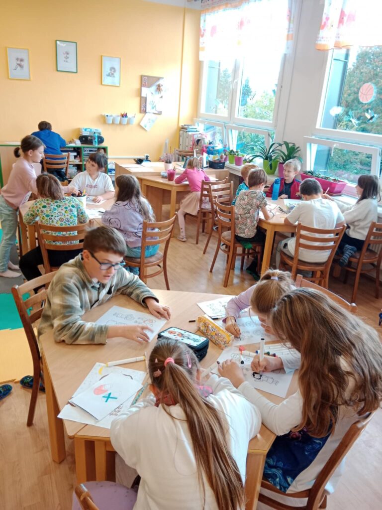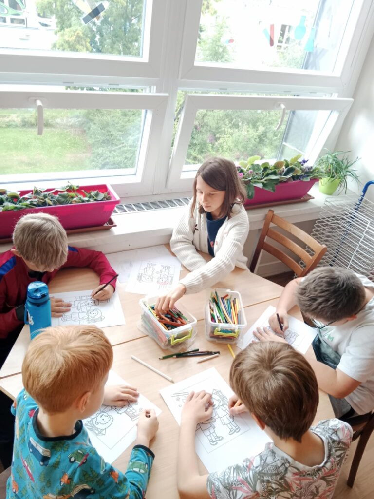 Děti z 1. a 4. oddělení školní družiny se společně zahájily činnost Plánu ŠD Slušné chování. Ve smíšených skupinkách mladších a starších ročníků nejprve doplnily křížovku a odhalily tajenku – chování.