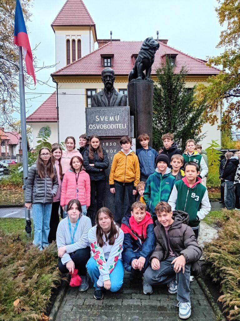 Dne 24.10.2025 se žáci 7. A Základní školy Vyhlídka zúčastnili pietního aktu u příležitosti znovuodhalení sochy prezidenta Tomáše Garrigua Masaryka v parku Botanika.