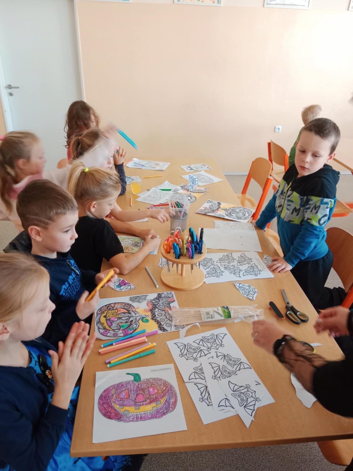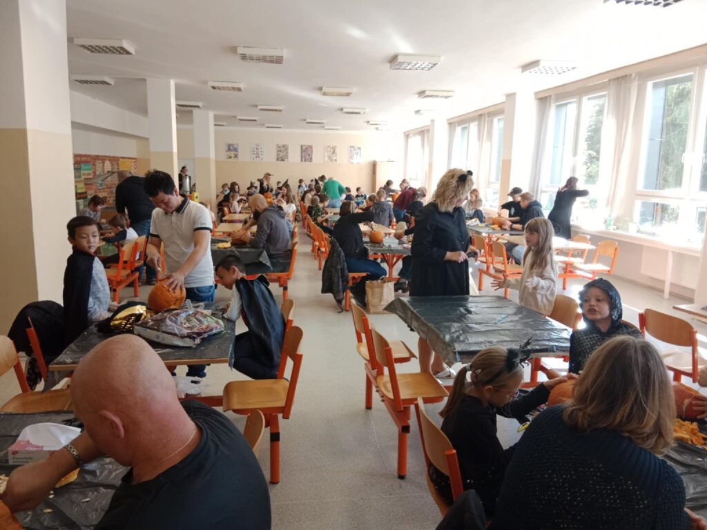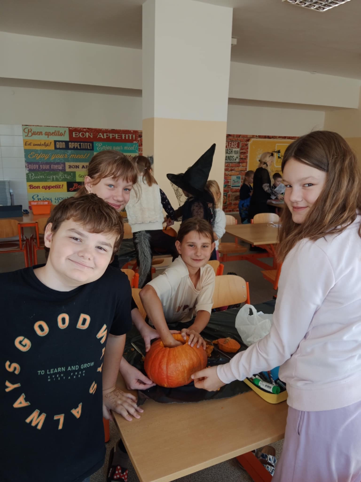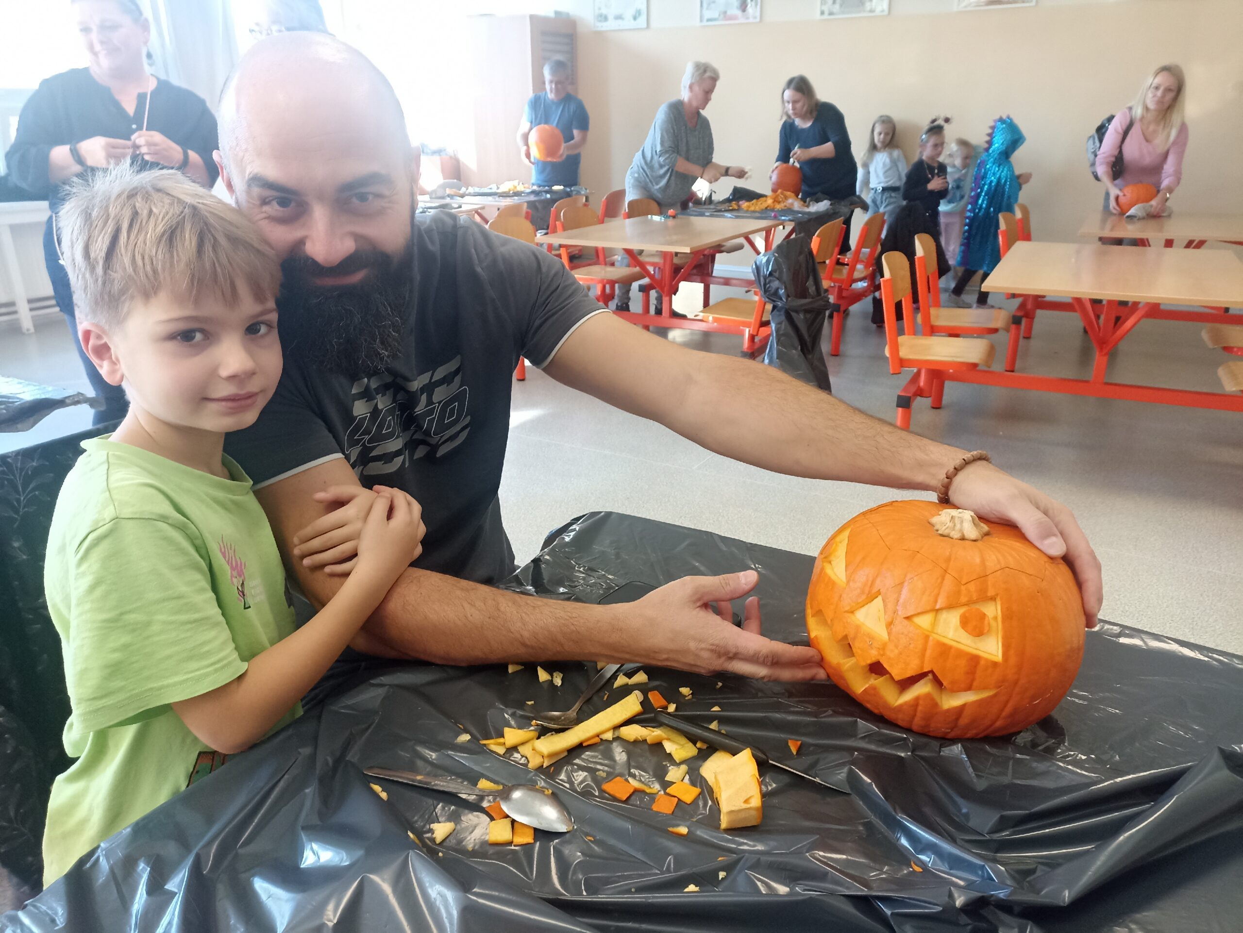 S koncem října se přiblížilo naše tradiční dýňování. I když Halloween není původní český svátek, jeho obliba u dětí stále stoupá. Proto školní družina připravila halloweenský foto koutek v prostorech hlavního vchodu školy, tak i v mimoškolním pavilonu. 20. 10. 2025 družina uspořádala ve školní jídelně 13. ročník tradičního dlabání dýní. Letošní akce měla veliký ohlas a hojnou účast. Kdo pěstuje dýně ví, že tato zelenina je zaručeným zahrádkářským úspěchem svou velikostí i množstvím. Sešly se nám tedy dýně rozmanitých tvarů. Děti podporovány svými radiči a příbuznými se pustily do nádherných dýňových kreací. Vůni oranžové dužiny, doplnila vůně stylově oranžového a zdravého mrkvového moučníku našich paních kuchařek. Děkujeme jim tímto i za pomoc s přípravou. Některé děti přišly v halloweenských maskách z domova, jiné si masky vytvořily ve školní družině. Všechny děti, které tvořily z dýni nebo využily výtvarného koutku a dílničky dostávaly odměnu. Dýňové lampičky jsou vystaveny v prostorech školy, kde navazujeme spolupráci s 1. stupněm a školní soutěží O nejkrásnější halloweenskou dýni.