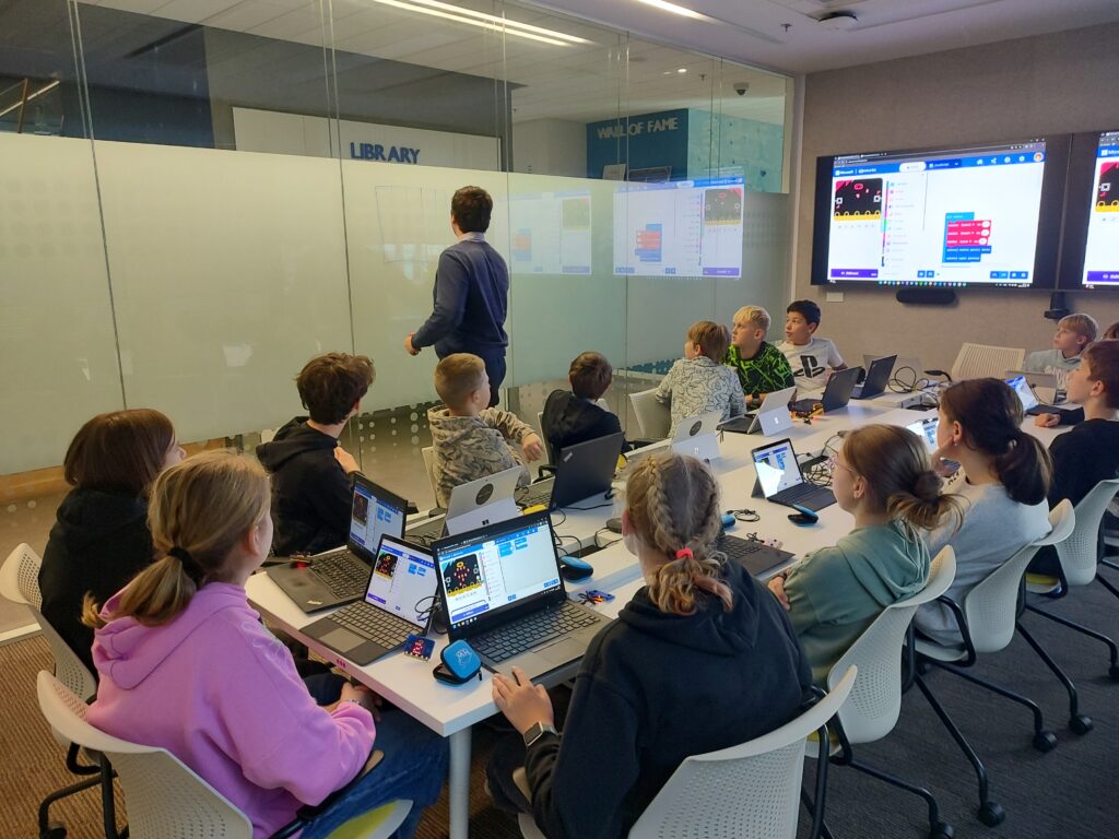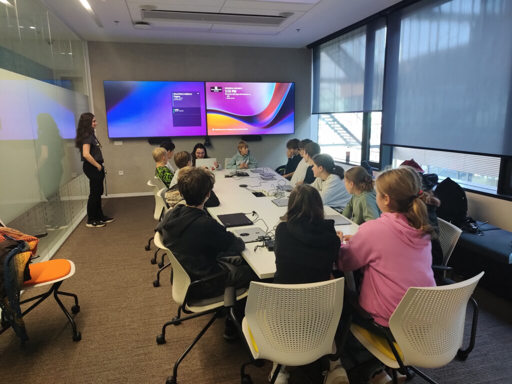 Dalším bodem programu byl workshop pod vedením zkušených odborníků, během kterého si žáci sami naprogramovali jednoduchou hru na zařízení Micro:bit. Práce s reálnými nástroji a vedení od profesionálů byly pro děti velmi motivující. Nejčastější otázkou dne bylo: „Co musím udělat, abych tady mohl jednou pracovat?“