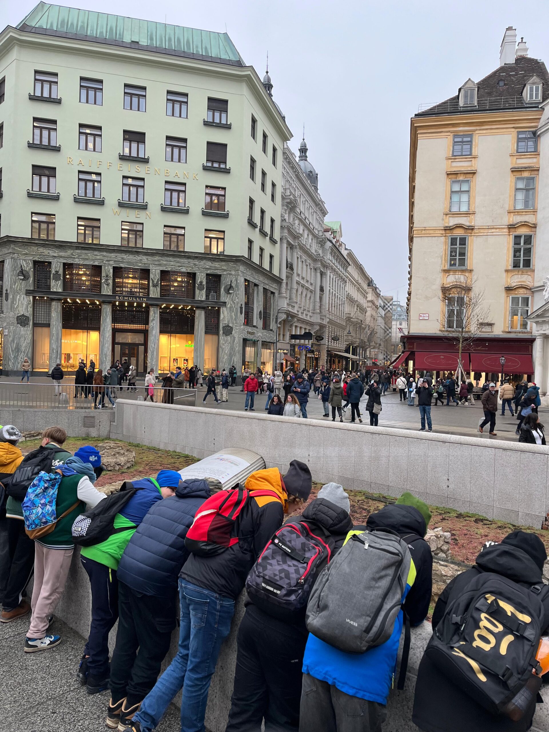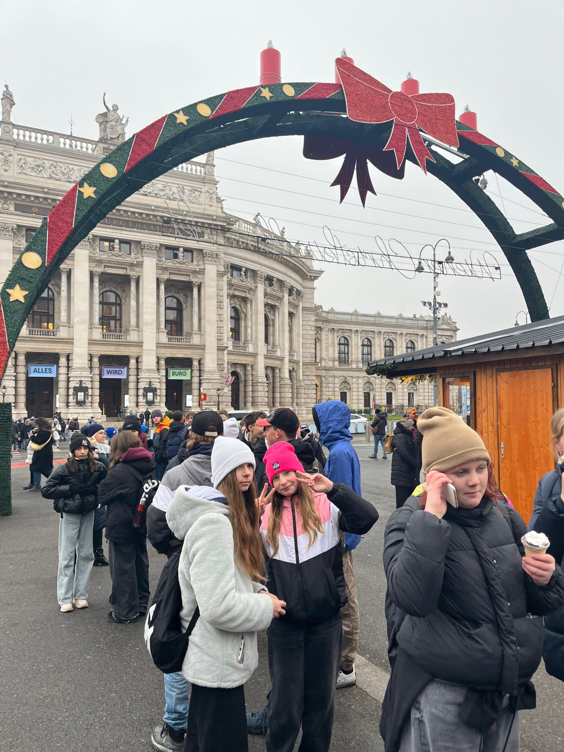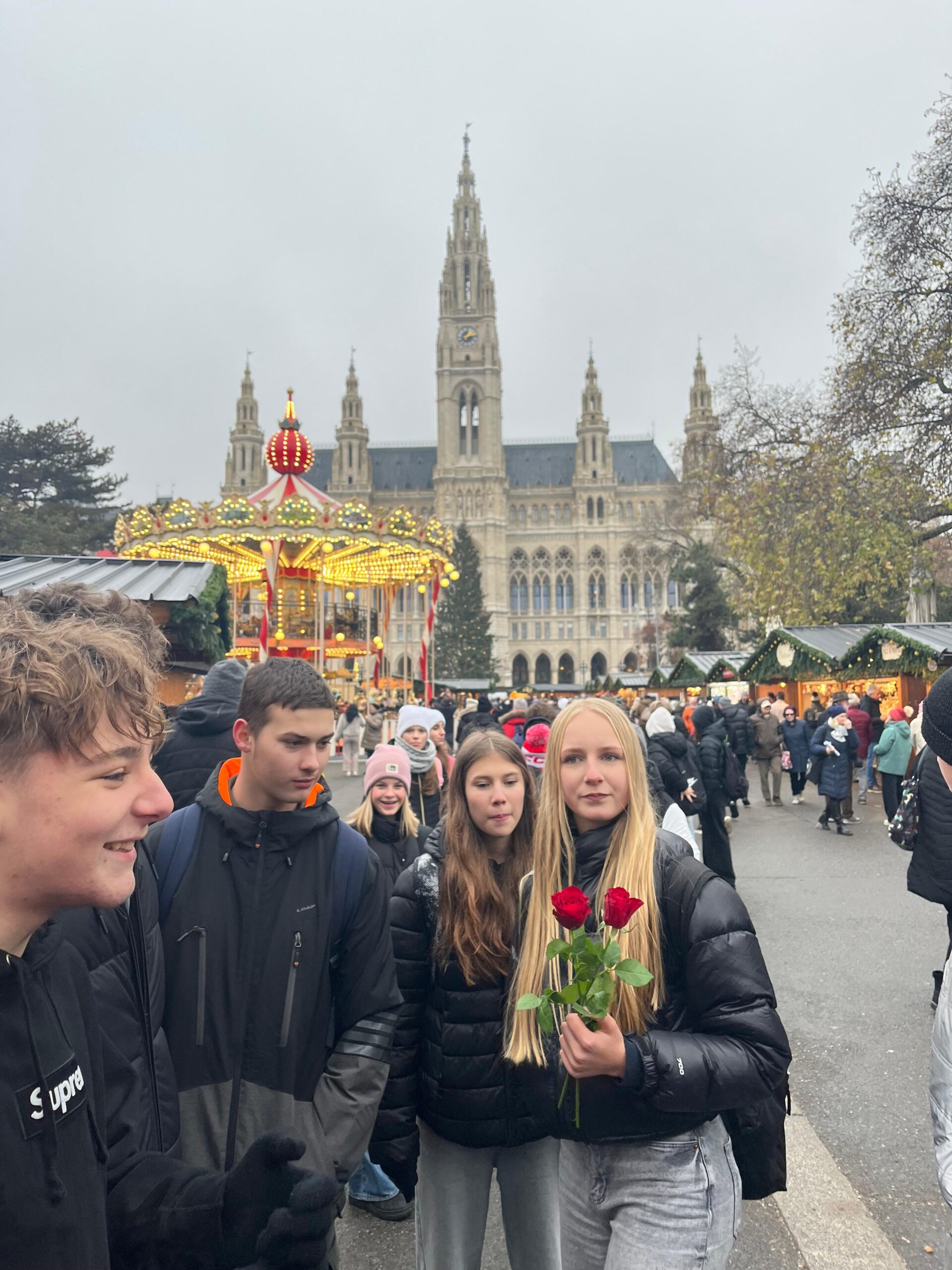 Poté jsme se přesunuli do samého srdce Vídně. Adventní atmosféru jsme nasávali nejprve u Nové radnice, kde se koná jeden z nejnavštěvovanějších trhů. Následovala procházka přes areál Hofburgu a historické uličky až ke katedrále sv. Štěpána, u níž se nachází další tradiční adventní trh s dlouhou historií sahající až do 13. století. I zde měli žáci rozchod a s nadšením prozkoumávali jednotlivé stánky. Vzduchem se nesla vůně punče, čokolády, perníčků a mnoha dalších dobrot.