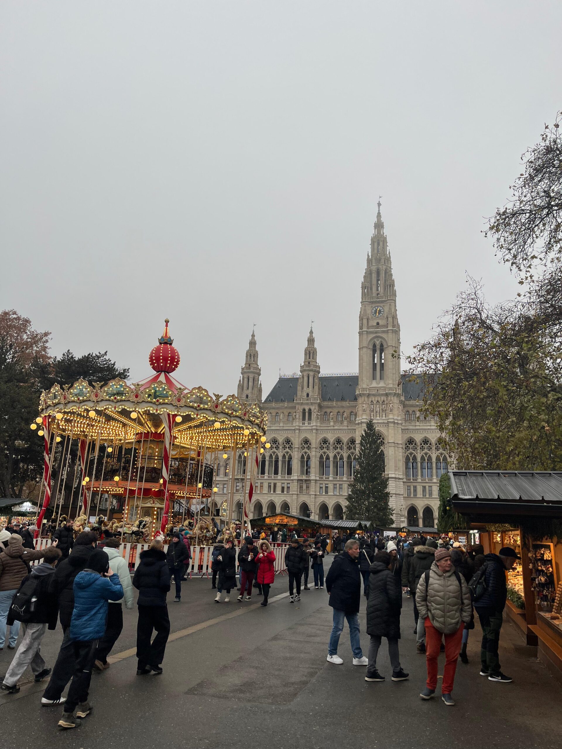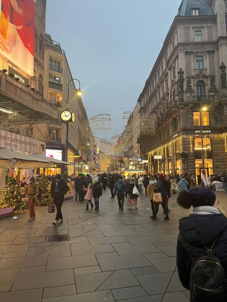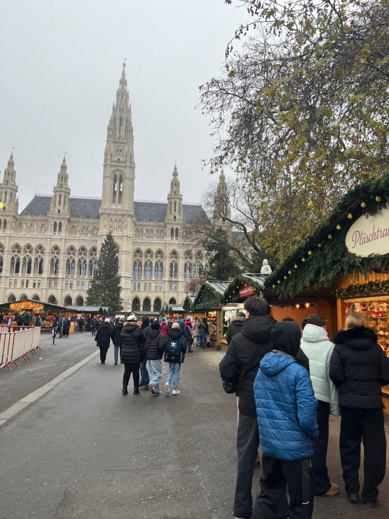 Poté jsme se přesunuli do samého srdce Vídně. Adventní atmosféru jsme nasávali nejprve u Nové radnice, kde se koná jeden z nejnavštěvovanějších trhů. Následovala procházka přes areál Hofburgu a historické uličky až ke katedrále sv. Štěpána, u níž se nachází další tradiční adventní trh s dlouhou historií sahající až do 13. století. I zde měli žáci rozchod a s nadšením prozkoumávali jednotlivé stánky. Vzduchem se nesla vůně punče, čokolády, perníčků a mnoha dalších dobrot.