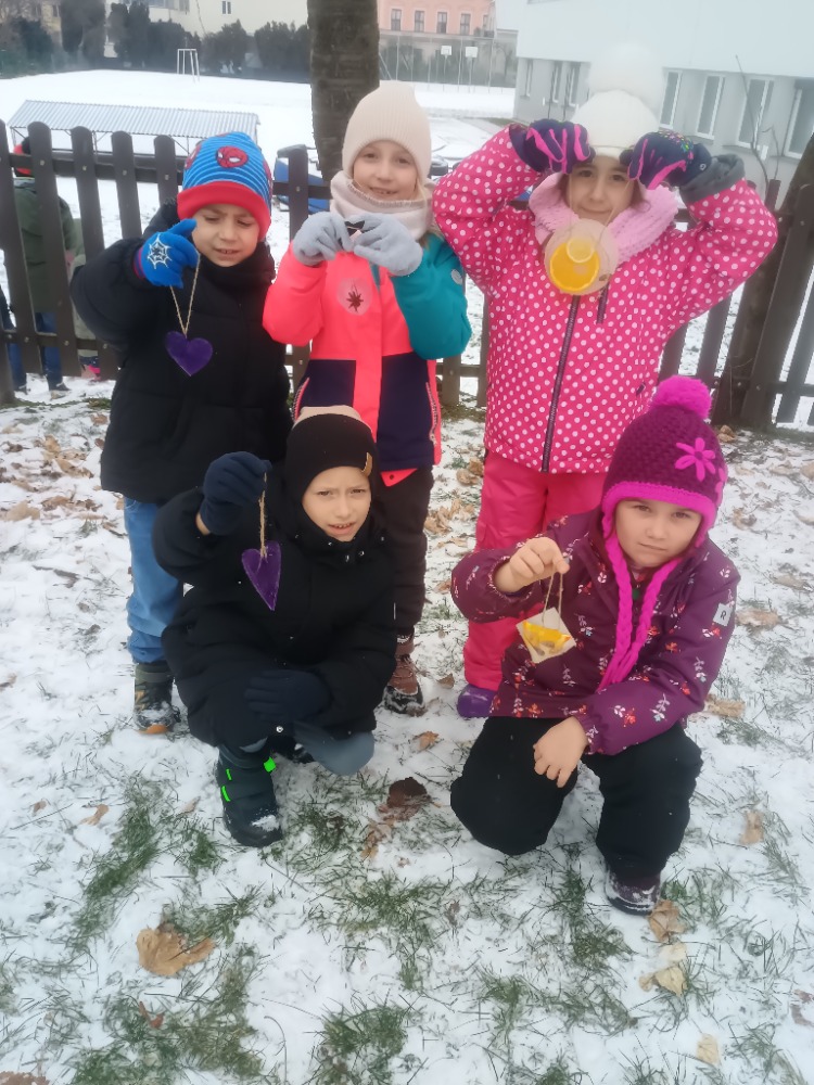 Děti z 3. oddělení školní družinky využily mrazivé počasí a nechaly kouzlit přírodu. Vytvořily tak malé zázraky z vody, listů, větviček a bobulí. Svými ledovými výtvory vyzdobily zahradu v areálu školy, která se na chvíli proměnila v přírodní zimní galerii. Tato aktivita dětem přinesla nejen radost z tvoření, ale také prohloubila jejich vztah k přírodě a ukázala, že i obyčejné věci kolem nás se mohou proměnit v něco výjimečného. Jejich umělecká díla jsou toho důkazem.