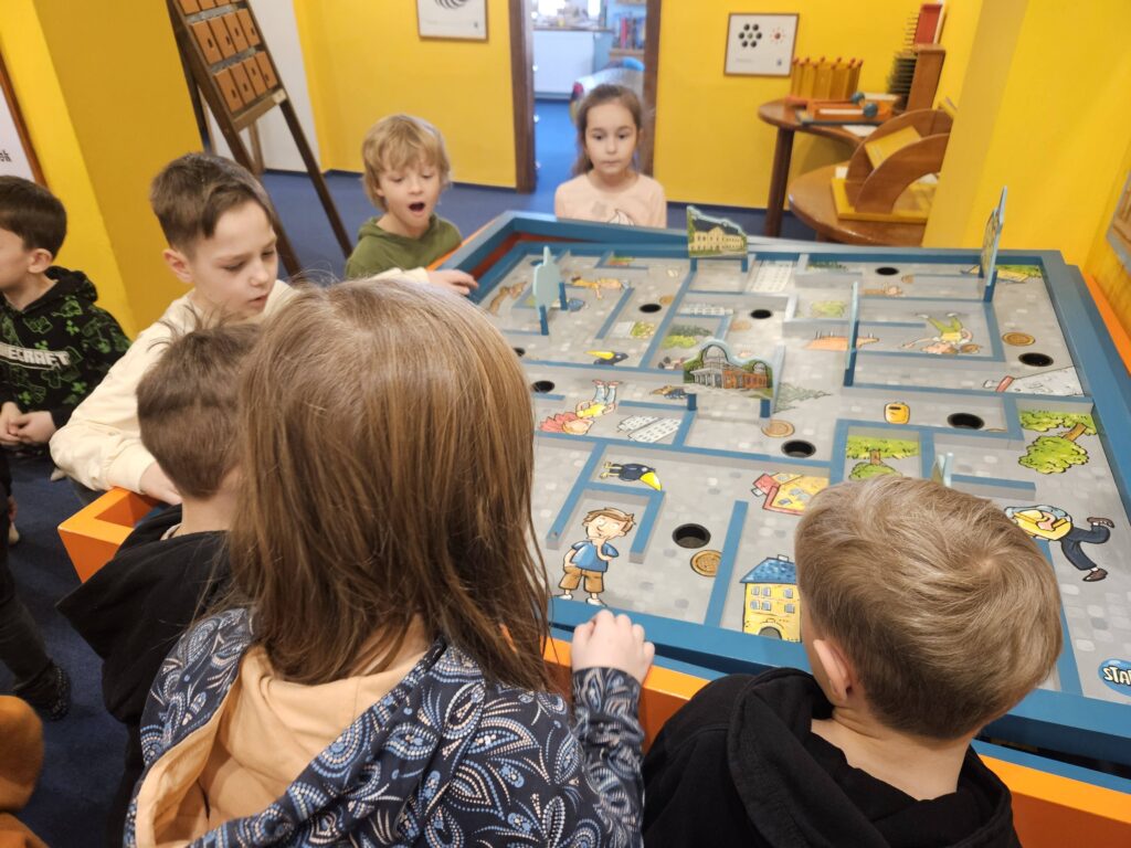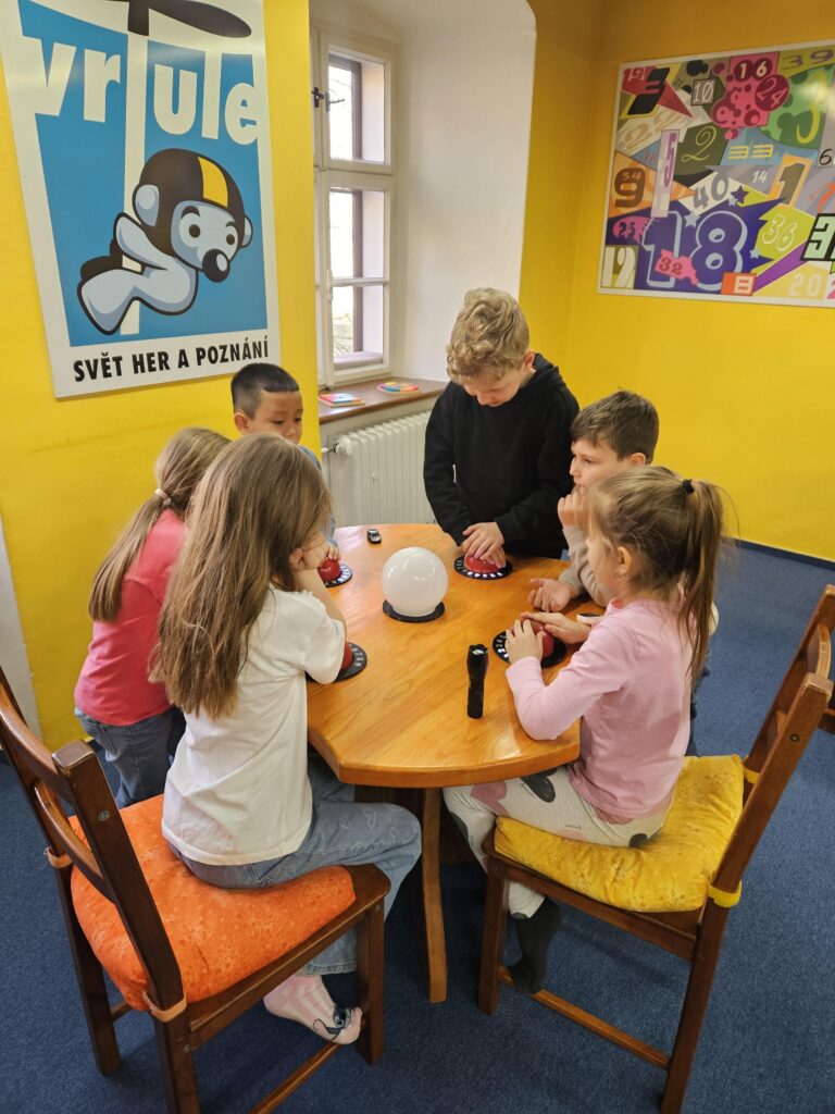 Třípatrová renesanční budova ve Valašském Meziříčí, kde sídlí zábavně naučné centrum Vrtule – Svět her a poznání, se ve středu 11. 3. 2026 stala cílem zábavně-naučné výpravy žáků z 2. a 3.oddělení školní družiny. Ojedinělá hravá expozice děti vtáhla do světa optických klamů a zrakových iluzí, interaktivní výstava Evropou křížem krážem jim formou několika samostatných her představila náš kontinent a s baterkou v ruce prozkoumaly spletitá zákoutí Krtkova bludiště. Nadšení a radost se nesla celou dobrodružnou výpravou.