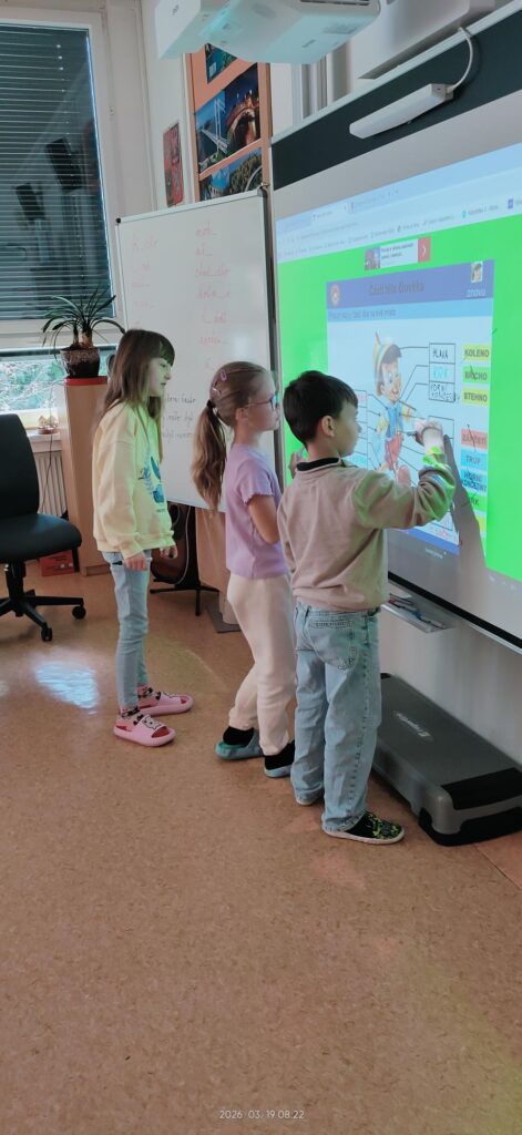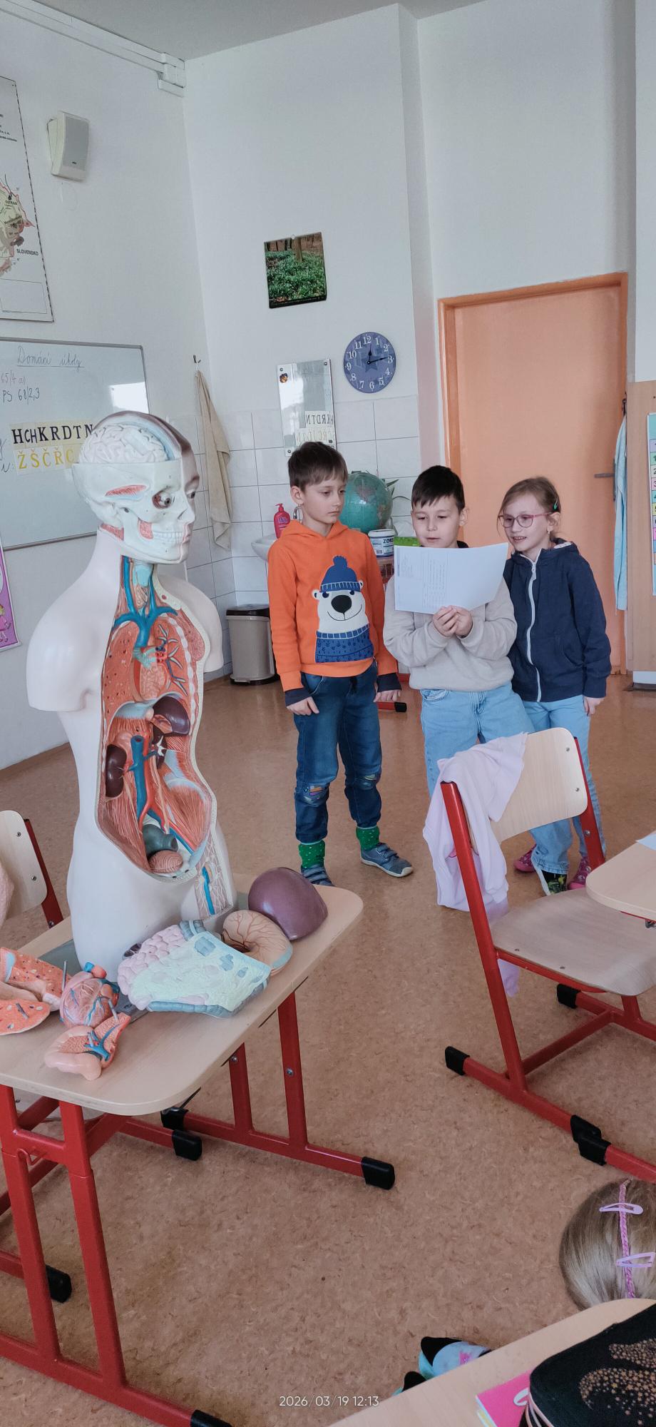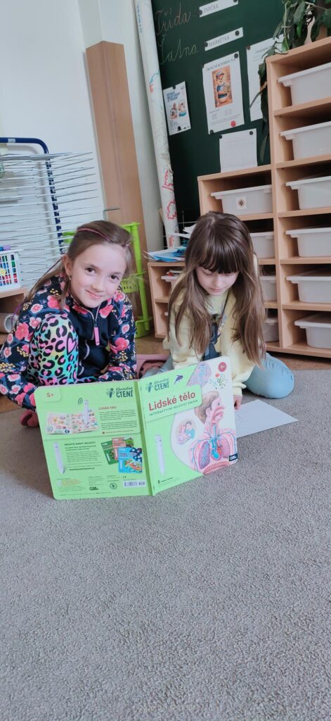Tento projektový den jsme zahájili zpěvem a tancem. V českém jazyce jsme dotvářeli věty, doplňovali i/y do slov souvisejících s částmi našeho těla. V matematice se nám na tabuli objevil mimozemšťan, u kterého jsme zjišťovali počty prstů, hlav, nohou… Dále jsme ve videu s Hurvínkem navštívili zubaře, kde jsme se dozvěděli mnoho užitečných rad, jak správně pečovat o své zuby. Následovala aktivita, kde si děti ve dvojicích vyhledávaly informace o vnitřních orgánech. O své zkušenosti se podělily s ostatními.