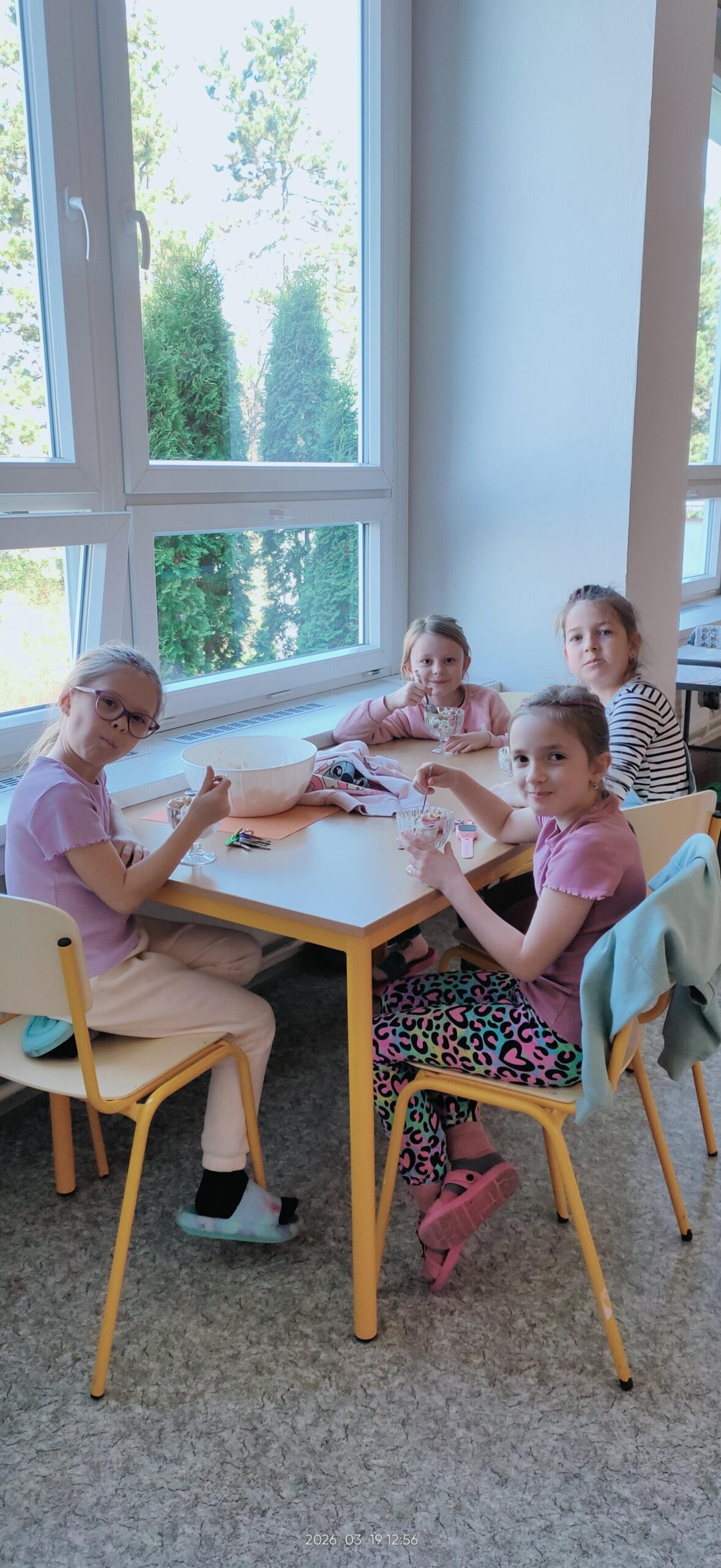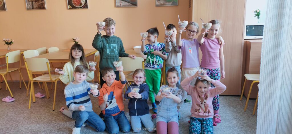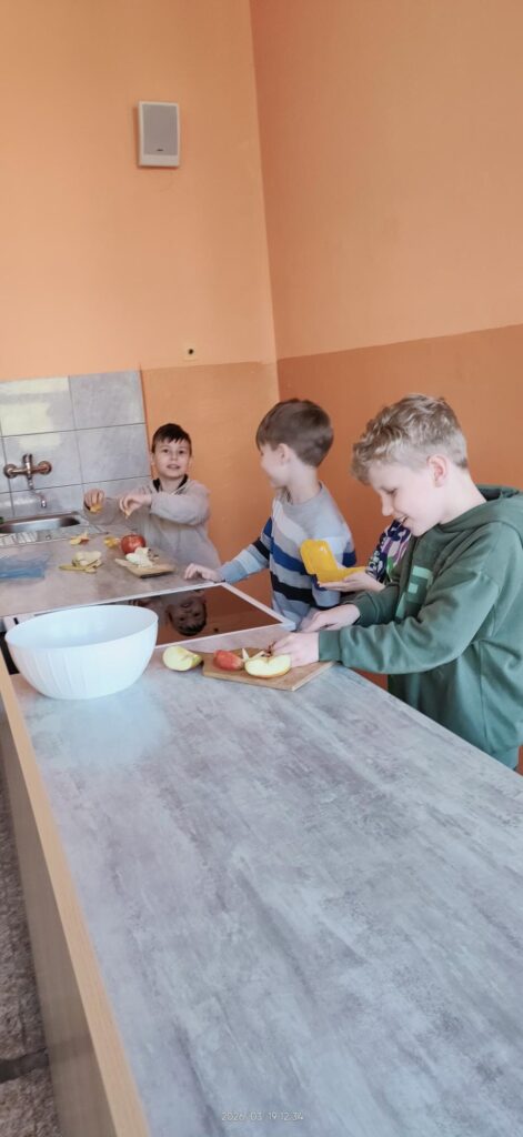 A abychom tento den završili něčím sladkým – ale zdravým, tak jsme si ve školní kuchyňce vyrobili ovocný salát s jogurtem. Mňam.