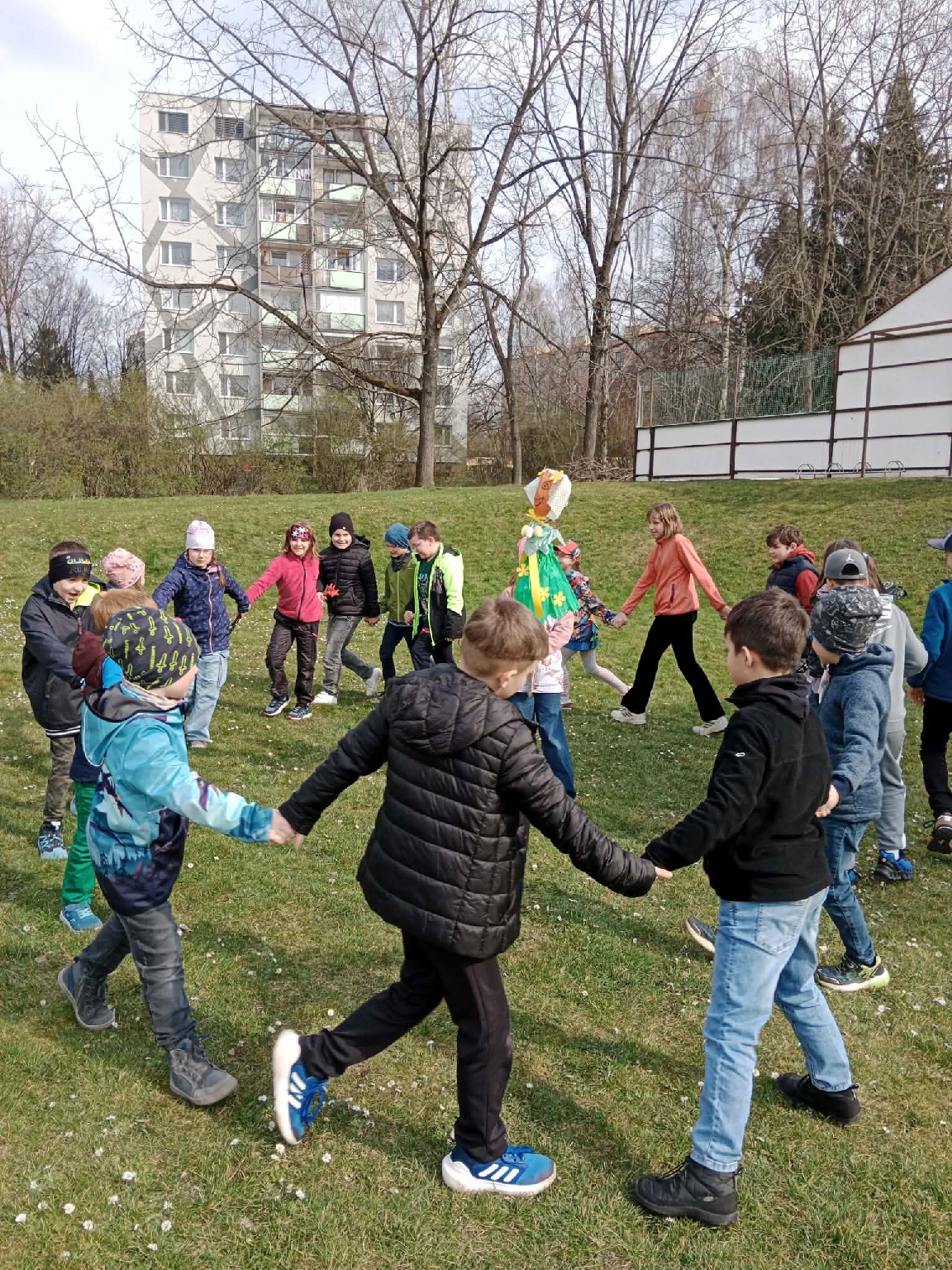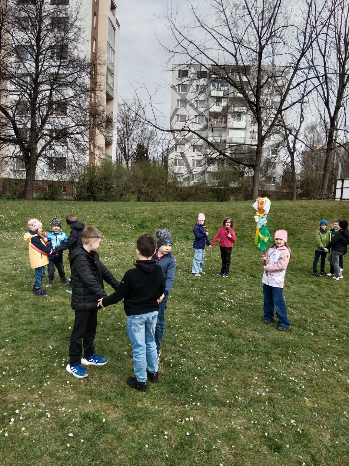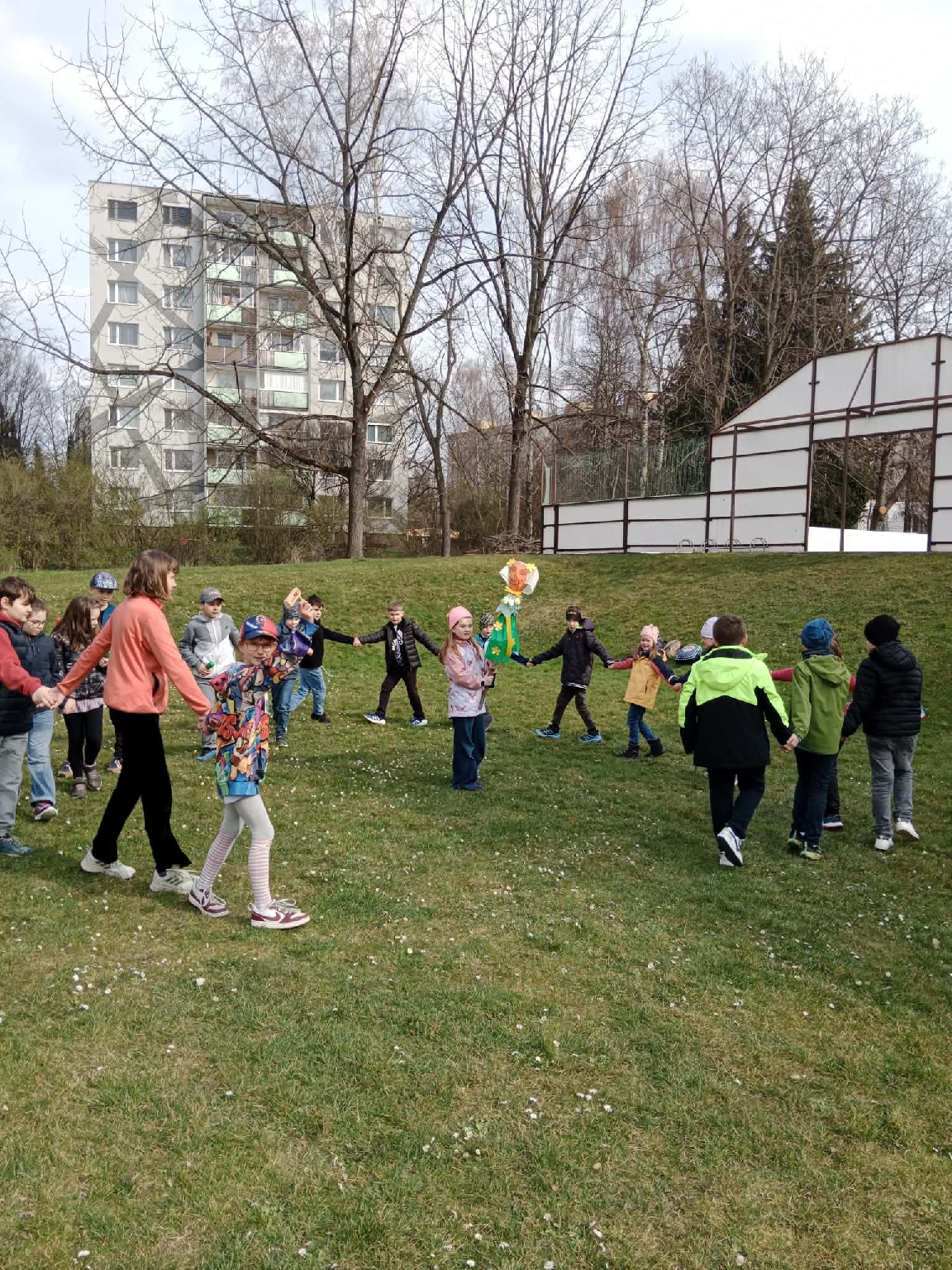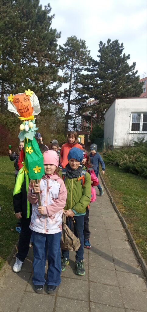 Skupinka dětí ze školní družiny se vydala průvodem za zvuku nástrojů a zpěvu vyhánějících zimu na školní zahradu. V čele se symbolem končícího zimního období a vítání jara. Morana vyhnala zimu ze všech koutů a děti se vrátily s jarními pučícími větvičkami, kterými jsme si nazdobili naše oddělení. I když je počasí stále liknavé přejeme všem příjemnou jarní optimistickou náladu. Vychovatelky ŠD
