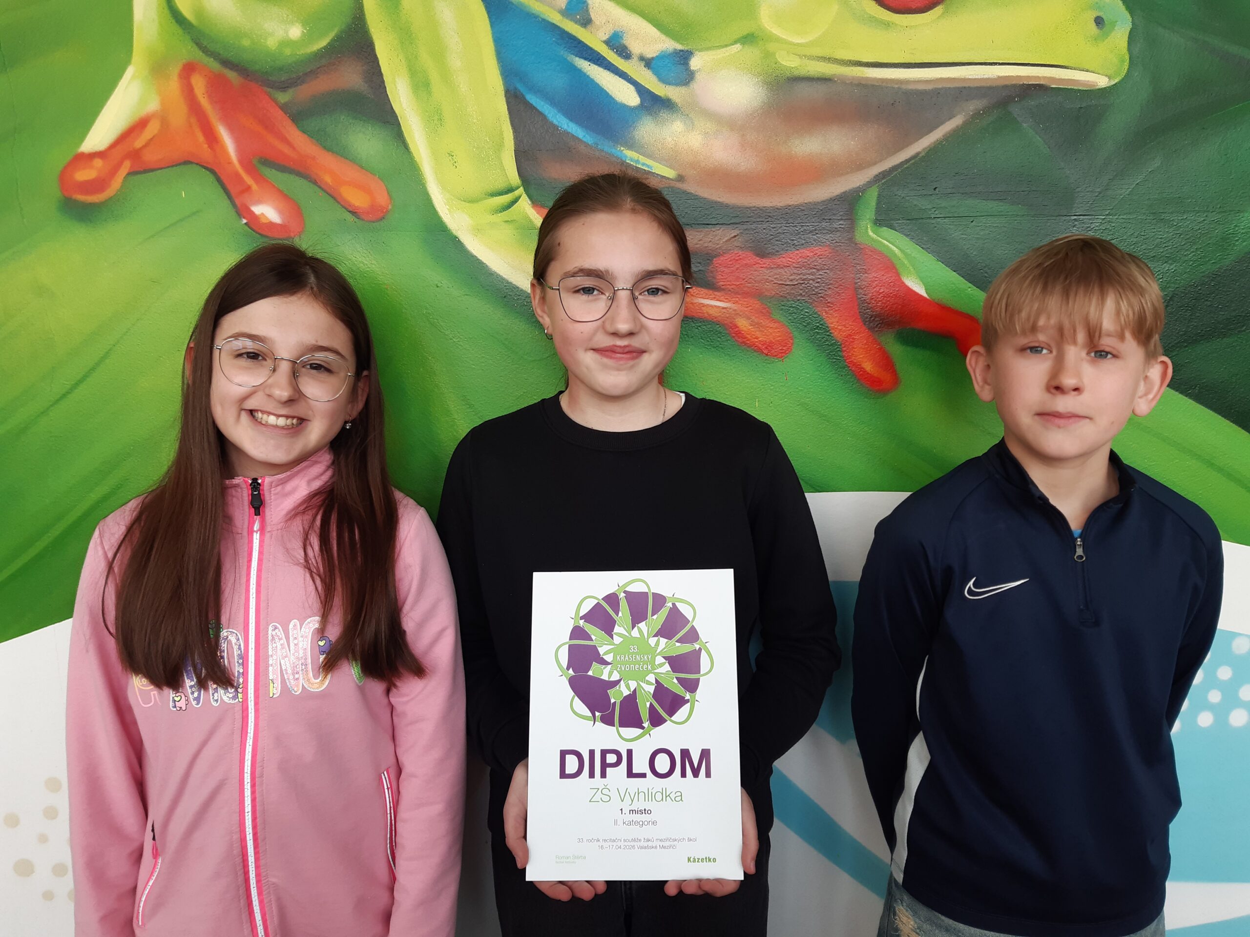 Velkou radost nám udělali naši recitátoři na 33. ročníku soutěže Krásenský zvoneček, která se konala ve dnech 16. a 17. 4. 2026 v M-klubu ve Valašském Meziříčí. Tato tradiční soutěž, v níž měří své síly jednak jednotlivci, jednak celé týmy, je vždy příjemným setkáním valašskomeziříčských recitátorů, odborná porota se dětem věnuje v rozborových seminářích, což je pro ně velmi přínosné a motivující.
