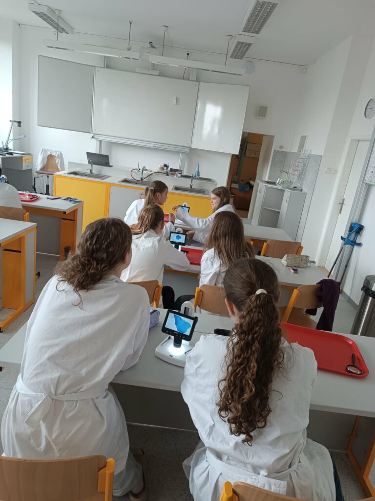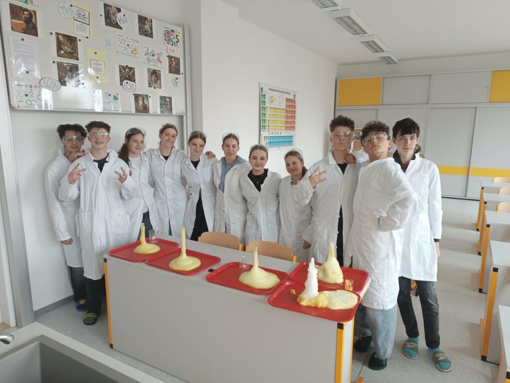Žáci 8. ročníků se v rámci chemicko-biologického praktika pravidelně seznamují se světem chemie a biologie praktickým a zajímavým způsobem. Během jednotlivých setkání si ověřují, že chemie není jen o vzorcích a učebnicích, ale především o pozorování, pokusech a logickém uvažování.